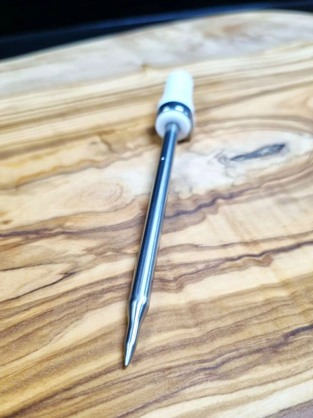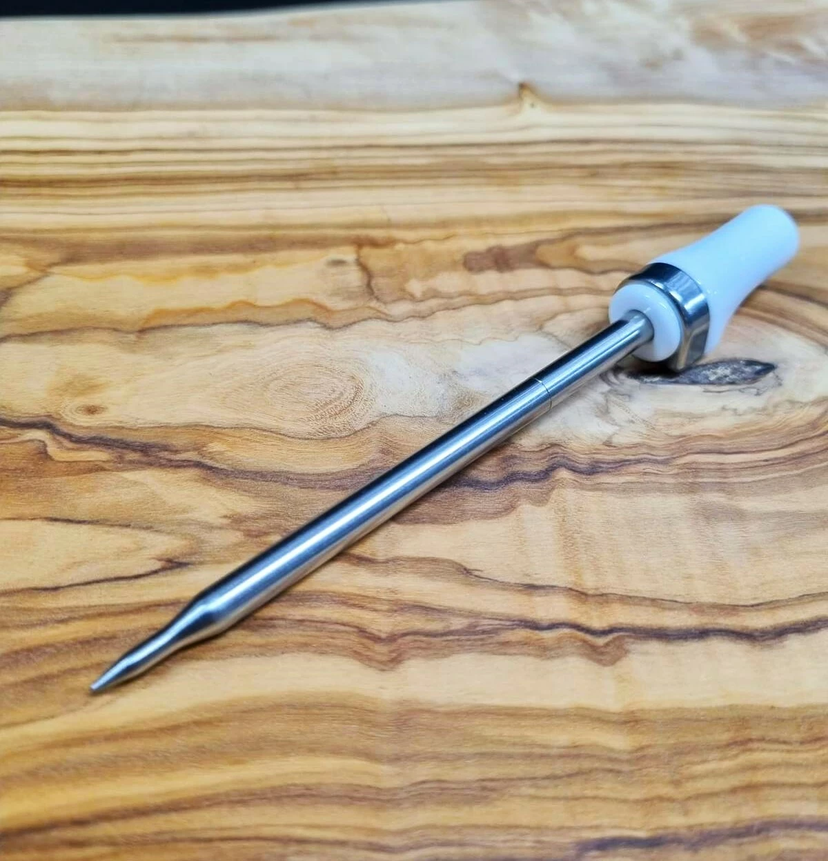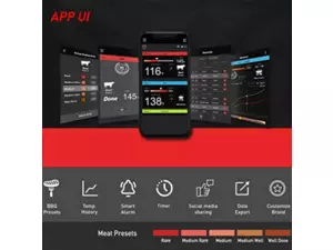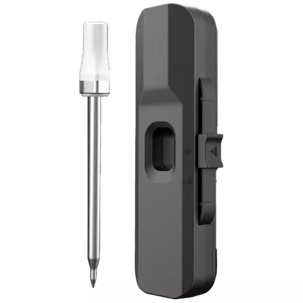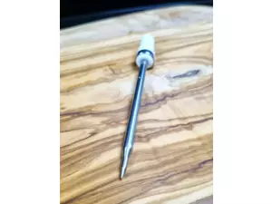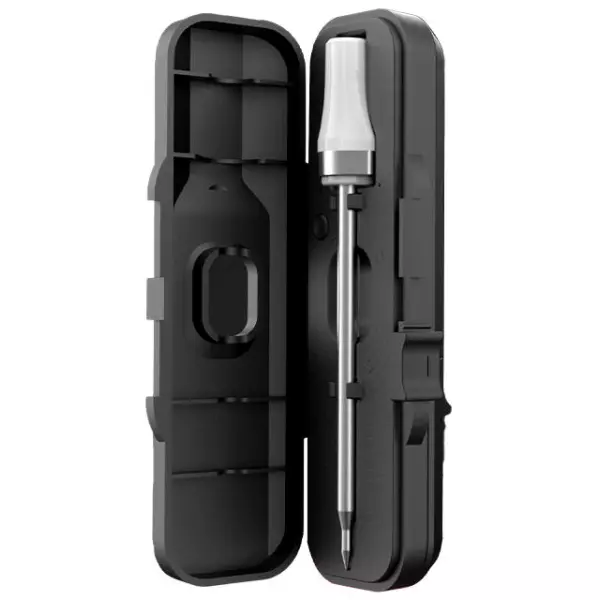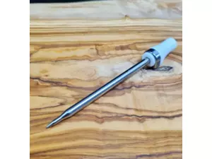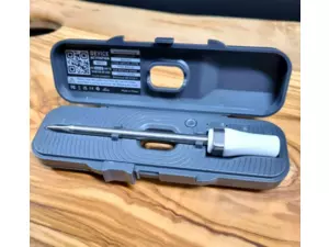 Bezdrátový teploměr na maso, který lze bezpečně používat v troubě i ve fritéze. Keramická rukojeť, která odolá vysokým teplotám až 500°C.