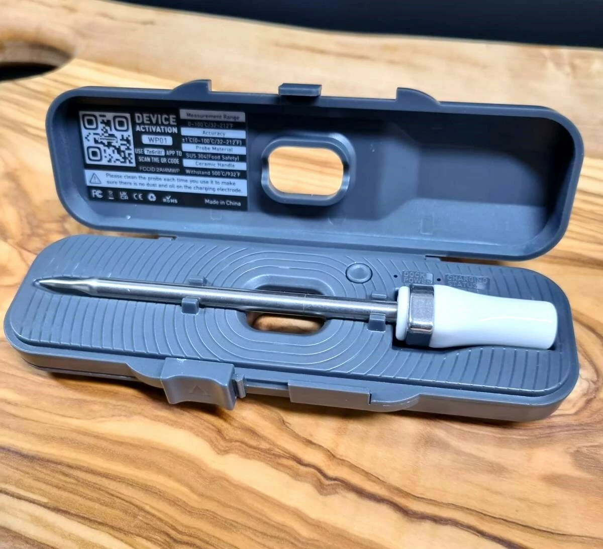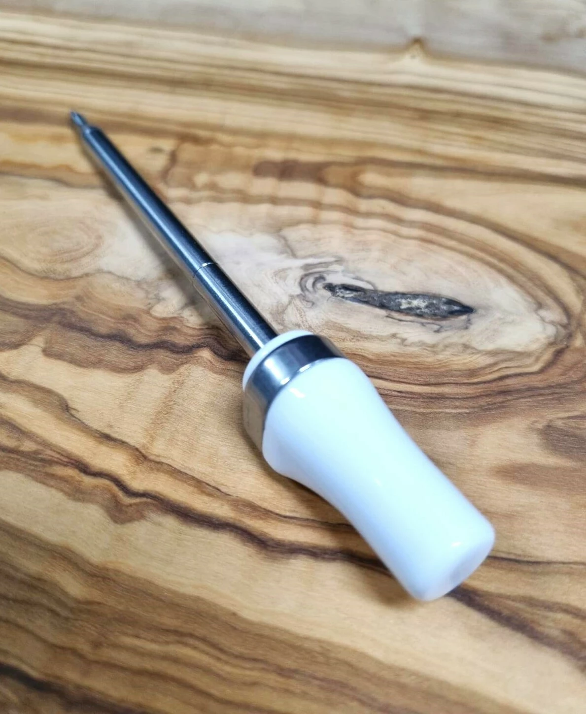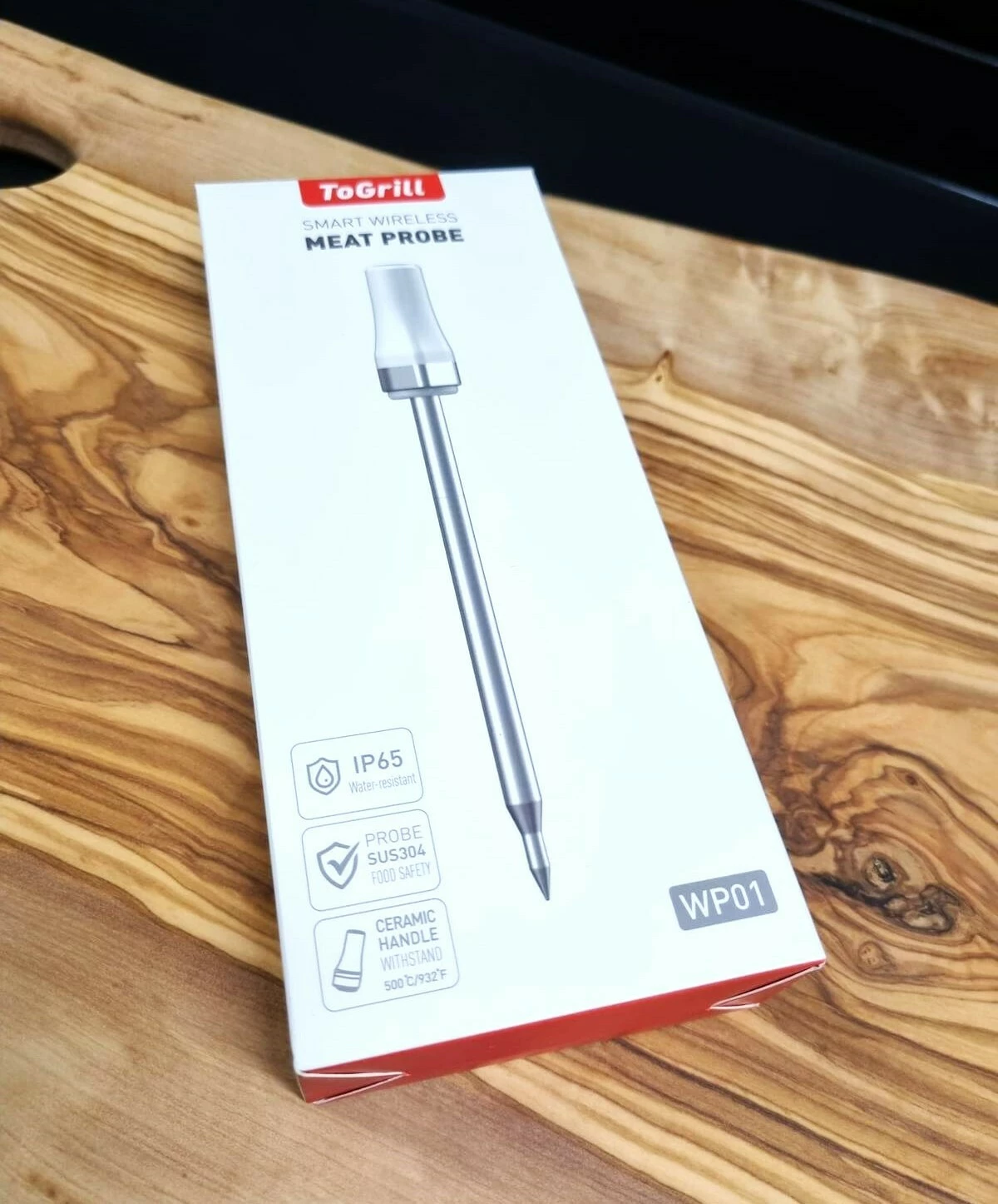 Bezdrátový teploměr na maso, který lze bezpečně používat v troubě i ve fritéze. Keramická rukojeť, která odolá vysokým teplotám až 500°C.