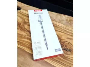 Bezdrátový teploměr na maso, který lze bezpečně používat v troubě i ve fritéze. Keramická rukojeť, která odolá vysokým teplotám až 500°C. Další info