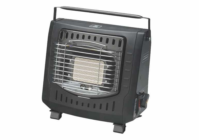 Přenosné plynové topení se sálavou topnou deskou (katalytické spalování), piezoelektrickým zapalováním, a maximálním výkonem cca 1,2kW.