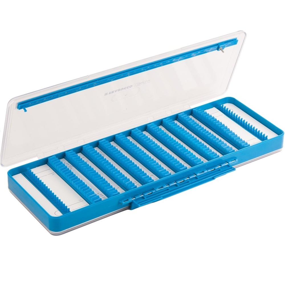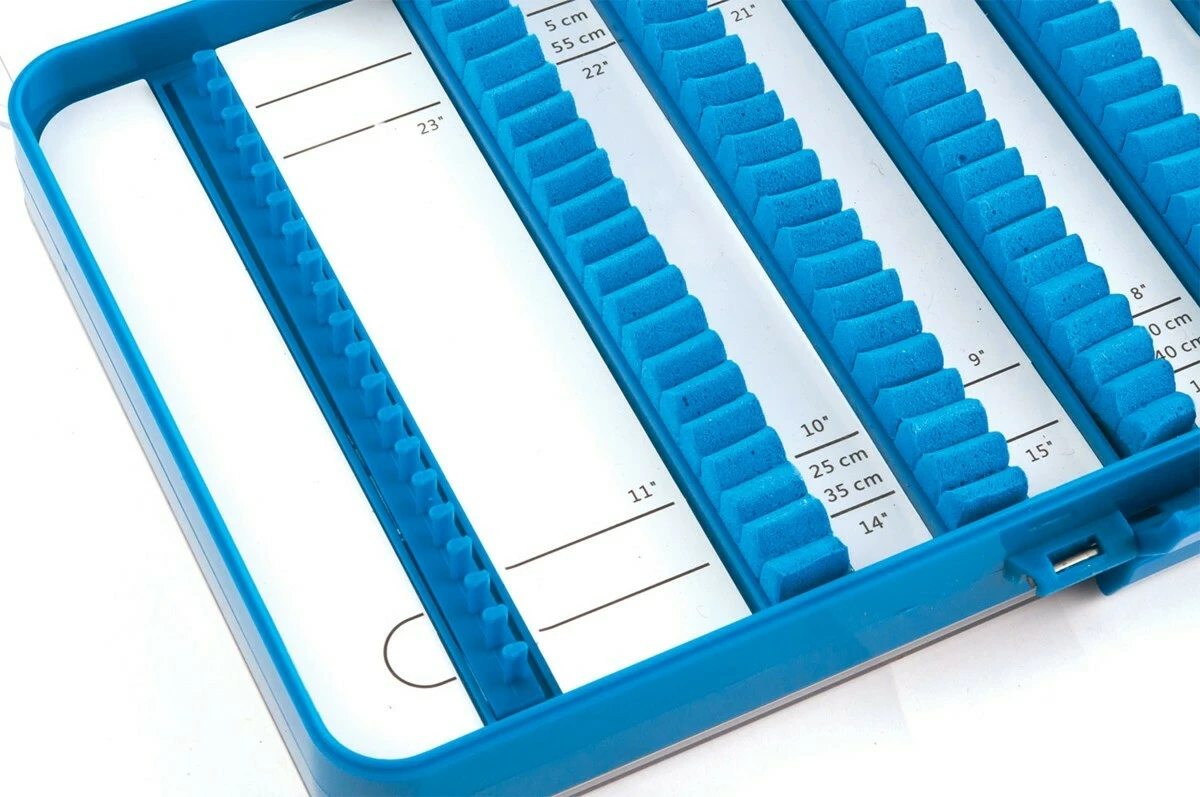 Plastový oboustranný zásobník až na 80 návazců. Zásobník je vybaven posuvným měřením na přesnou délku návazcu. Rozměry jsou 360x130x35mm.
