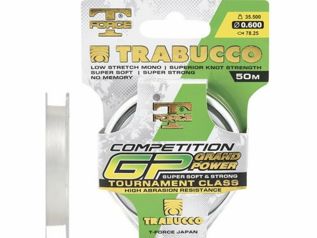 T-Force Competition GP je “Hi-tech” návazcový vlasec vyrobený v Japonsku. Díky své tvrdosti, absenci paměti a povrchové úpravě je ideální volbou pro koncové návazce.