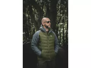 Nabízí skvělou izolační vrstvu, která vás při lovu kaprů udrží vždy v teple. Nová kombinace khaki a šedé barvy, kterou naleznete jak na bundě, tak na vestě, je doplněna stříbrnými zipy a decentním brandingem na obou oděvech.