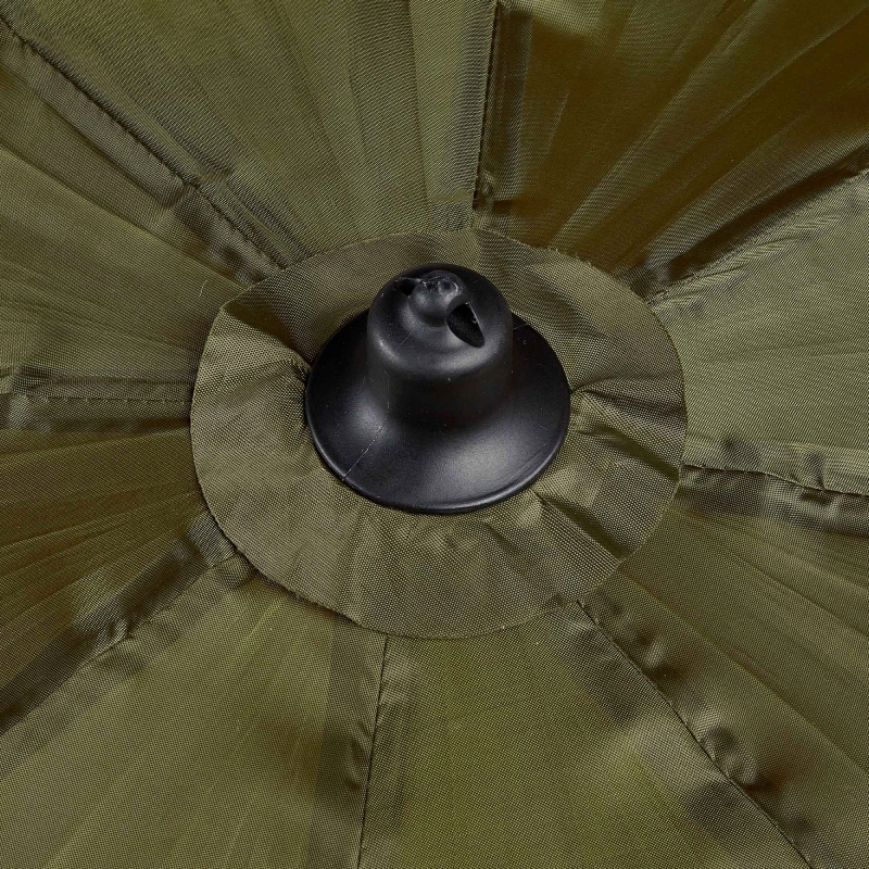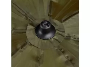 Voděodolná, olivově zelená látka má podlepené švy, aby byla maximálně nepromokavá. Rám je konstruován ze silných, ocelových žeber, aby se zabránilo poškození povětrnostními vlivy a středová tyč je vyrobena z hliníku, aby byla celková hmotnost co nejnižší.