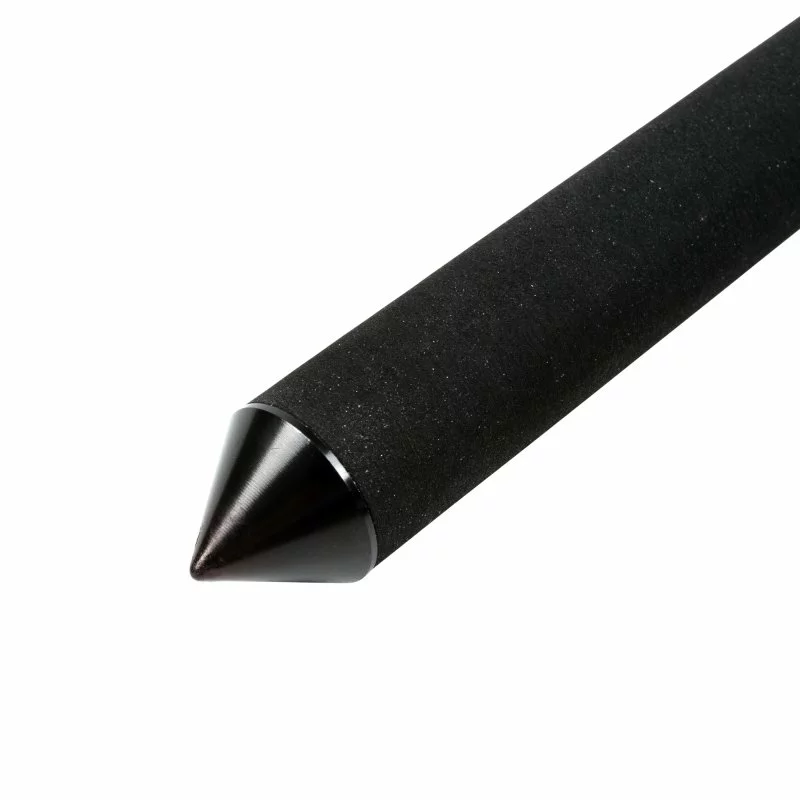 Rukojeť je potažena příjemnou, smršťovací fólií a je z jedné strany ukončena speciální, špičatou CNC obráběnou, hliníkovou zátkou a z druhé CNC obrobeným, hliníkovým, rozpěrným křížem s drážkou pro izotopové světlo.