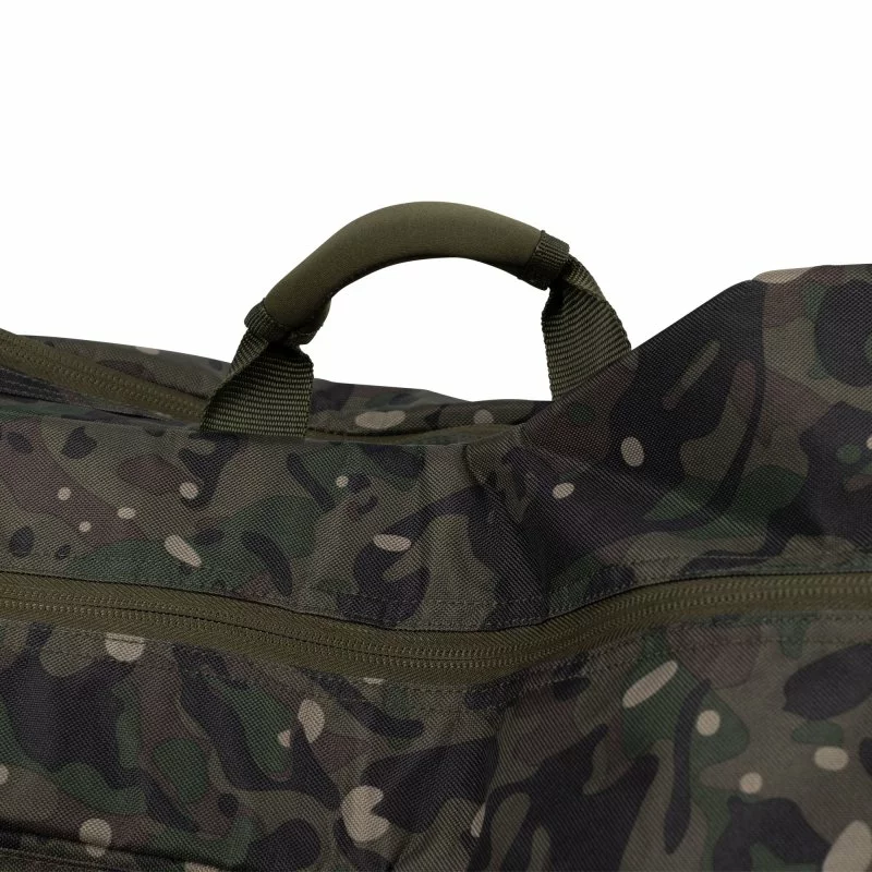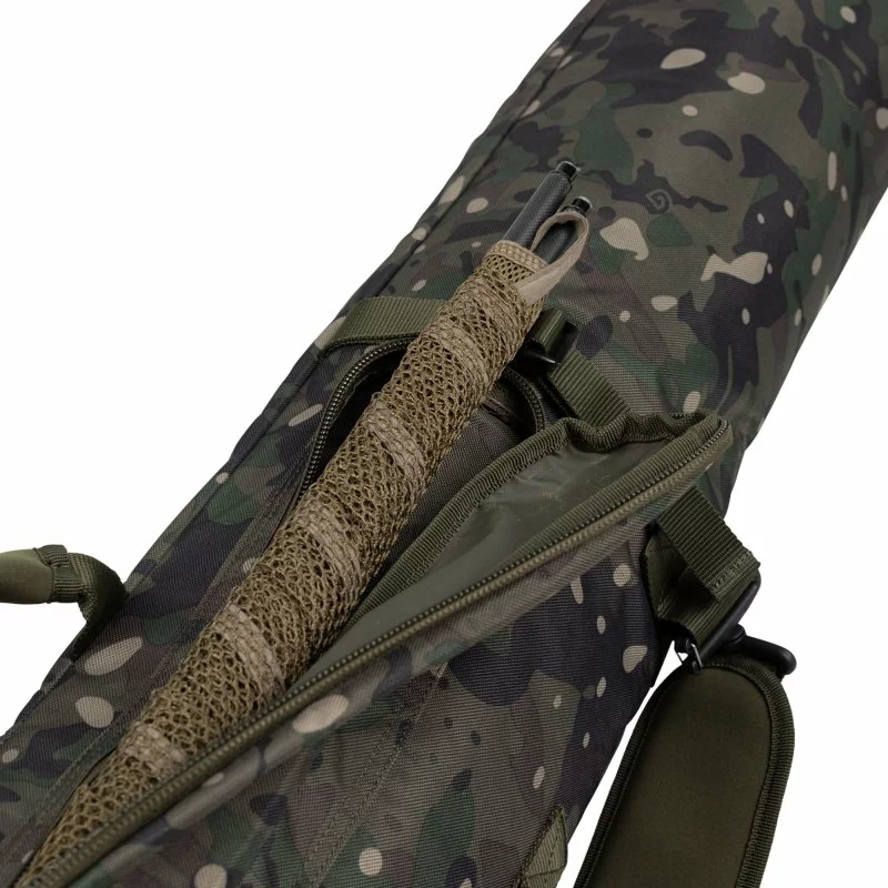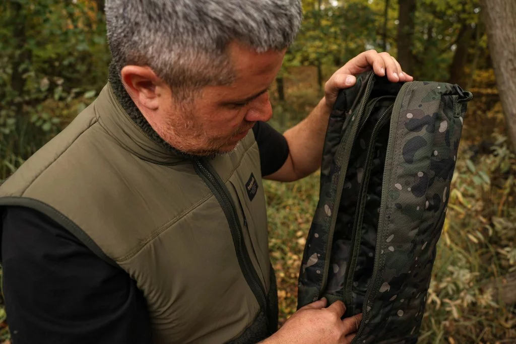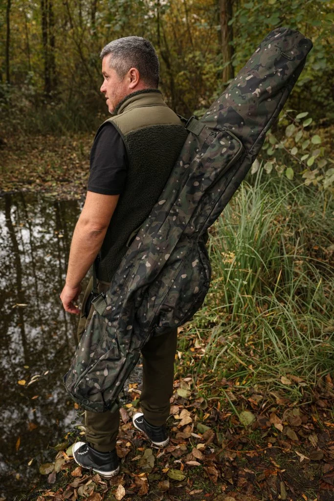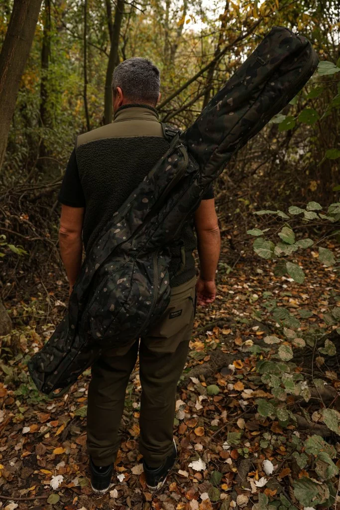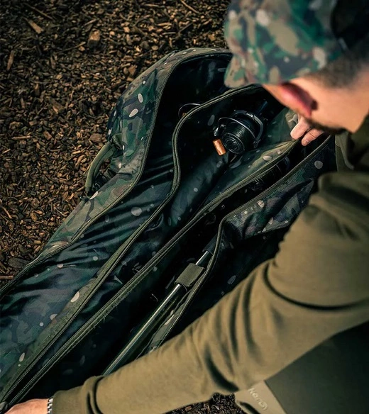 Silně polstrované pouzdro na pruty je vyladěno k dokonalosti a poskytuje velkorysou ochranu pro tři plně připravené kaprové pruty. Dvoucestný, odolný hlavní zip zajišťuje rychlý a snadný přístup k vašim prutům a navijákům. Rozšířené části špiček, spojené s vnitřním polstrováním, pojmou bez problémů 50 mm očka a zajistí, že budou vaše pruty během přepravy chráněny. Každý prut je oddělen vnitřním, polstrovaným pouzdrem a zajištěn na místě pomocí vnitřních neoprenových pásků. K dispozici je i další popruh a elastická smyčka, kterou lze použít pro uložení kobry, takže i ona může těžit z polstrované ochrany. Nadrozměrná část pouzdra na naviják je silně polstrovaná a velkoryse dimenzovaná, aby ochránila i ty největší navijáky. Obě strany pouzdra NXC 3 Rod Sleeves mají velké vnější kapsy na zip, které jsou vhodné pro podběráky, vidličky a další příslušenství. Na zadní straně je na základně velká otevřená kapsa, kam můžete uložit další prut, který lze zajistit pomocí napínacích popruhů. Do další, menší otevřené kapsy na zip lze umístit podběrák nebo uložit distanční tyče. Hned pod hlavním zipem je úhledně umístěná kapsa na zip pro uložení olov.