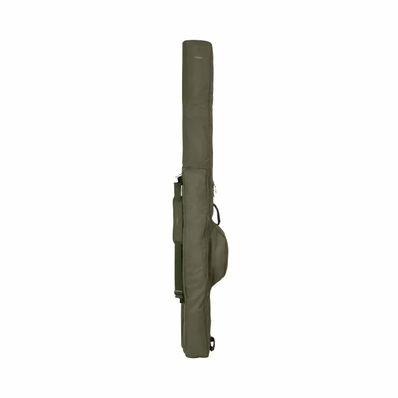 Silně polstrovaný obal na 3 pruty nabízí spoustu místa pro 3 plně vybavené pruty o délce 13 ft. Dvojitý, odolný, hlavní zip poskytuje rychlý a snadný přístup k vašim prutům a navijákům. Rozšířená vrchní část, spolu s vnitřním polstrováním, pojme bez problémů 50 mm očka, což zajistí, že vaše pruty jsou během přepravy bezpečně chráněny. Každý prut je oddělen vnitřní, polstrovanou kapsou a upevněn na svém místě pomocí vnitřních popruhů. Vnitřní popruhy lze využít i k uložení vašeho spodového prutu, takže i ten může těžit z polstrované ochrany.
