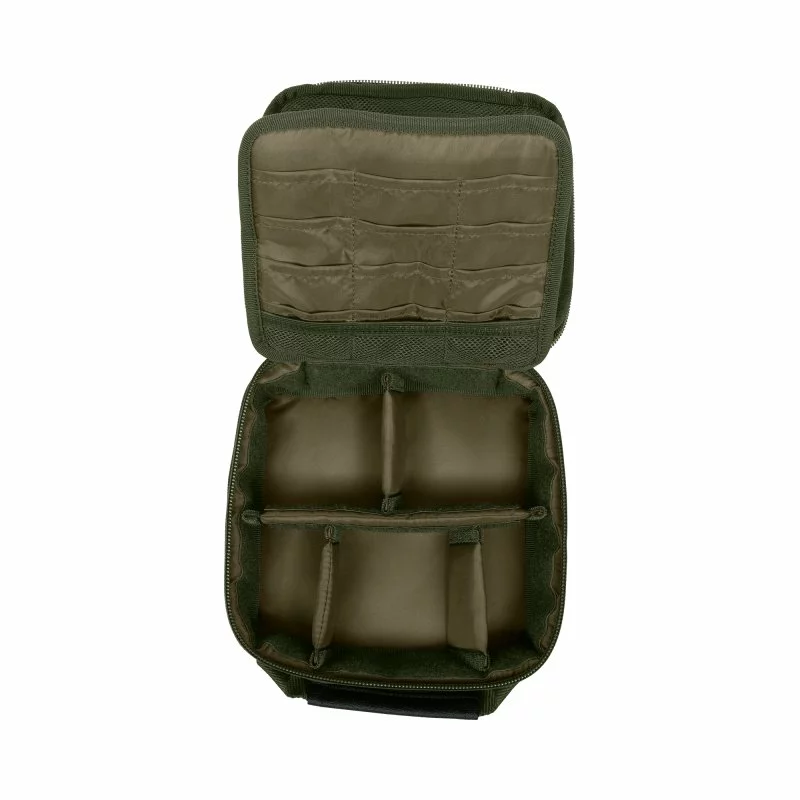 Penál NXG Compact Tackle Bag obsahuje přizpůsobitelný systém přihrádek a velké množství kapes vhodných pro různě velkou, rybářskou bižuterii a další náčiní.