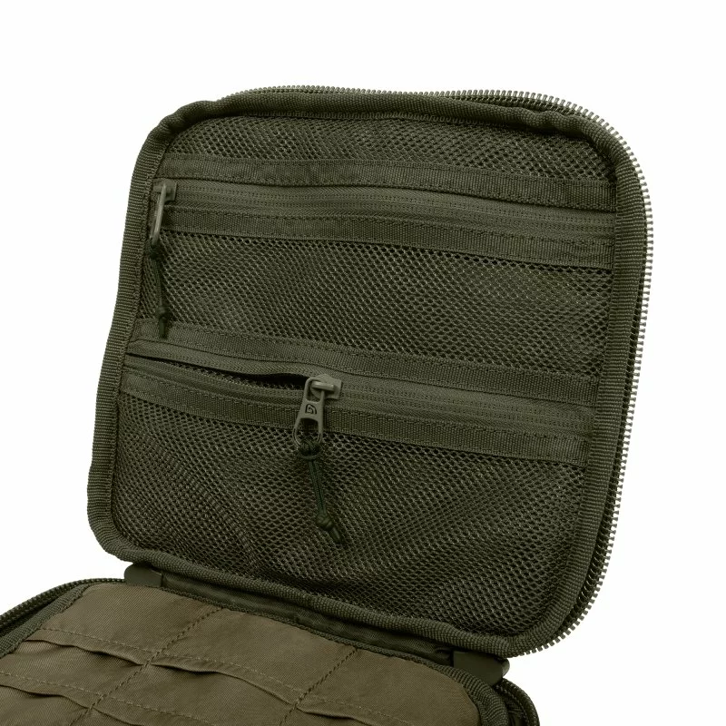 Má dvojité, pevné zipy pro snadný přístup, je vyroben z odolné látky n-dura, vodotěsné dno a madlo pro snadné usazení do anebo z kapes větších přepravních tašek.