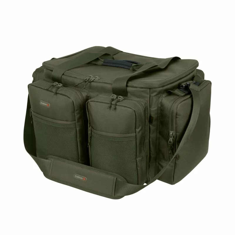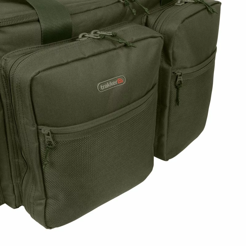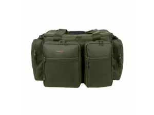 Zpevněné víko hlavního oddílu slouží také jako alternativa ke stolku do bivaku. Pět vnějších kapes poskytuje úložný prostor pro různé druhy rybářského vybavení. Robustní zipy umožňují snadný přístup ke všem kapsám i hlavnímu oddílu.