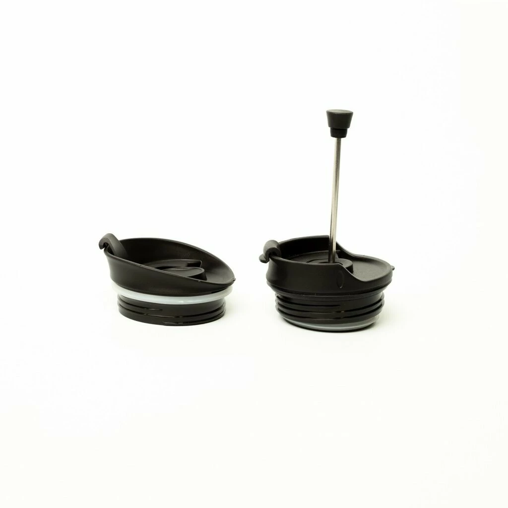 Termoska je dodávána se dvěma různými víčky: běžným víčkem odolným proti rozlití a praktickým víčkem s pístem (frenchpress), což z ní činí optimální rybářskou vychytávku.