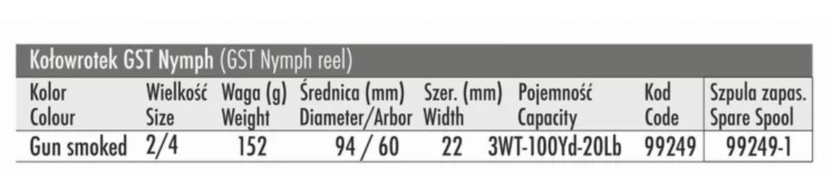 - kapacita + backing: #3 + 100 yds 20 lb