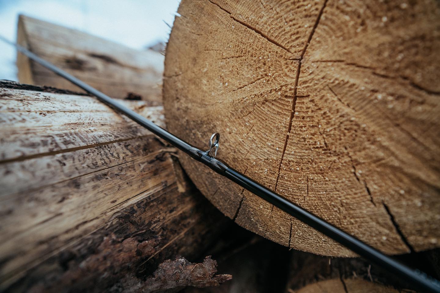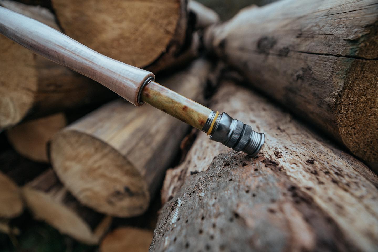 Prut je osazen jednostopými očky Pac Bay na 36T karbonovém blanku s atraktivně vypadajícím exotickým dřevem na sedle navijáku.
