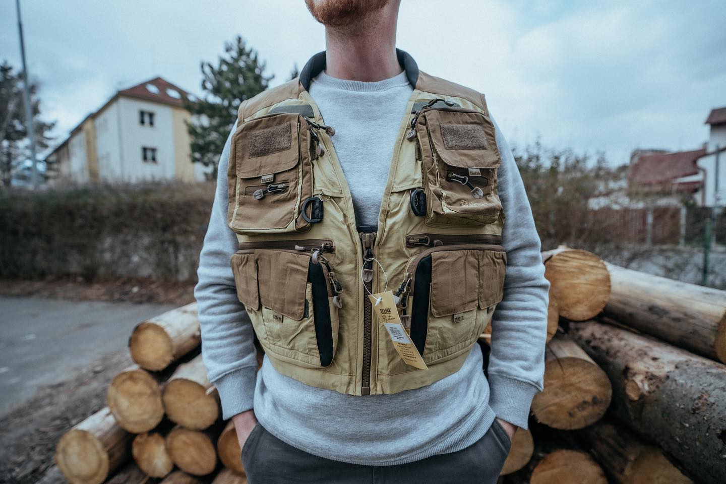 Vesta má 21 kapes. Zadní prostorná kapsa na zip, vpředu 14 kapes a 6 vnitřních kapes.