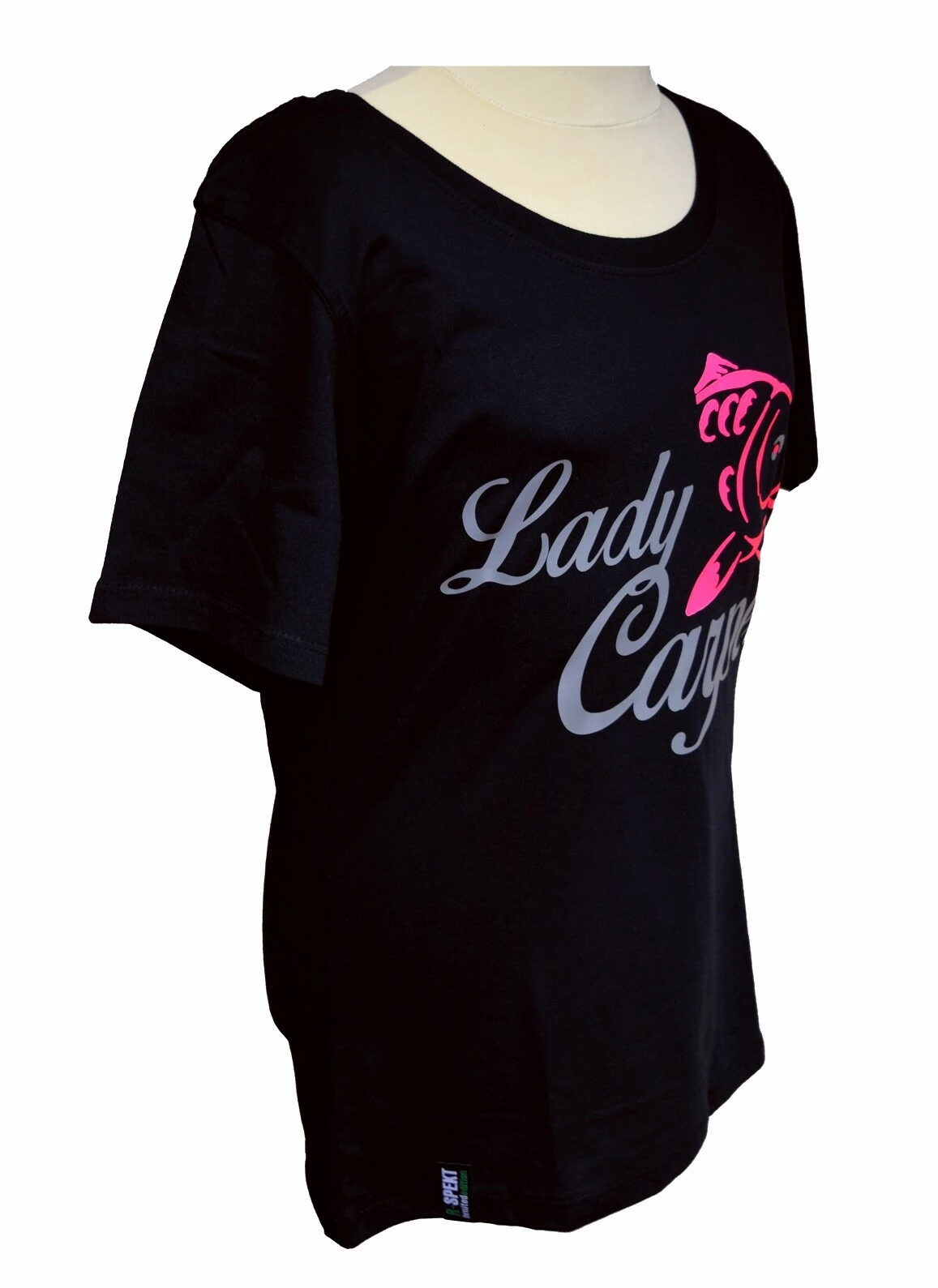 Na tričku je použit vysoce kvalitní transferový tisk v podobě velkého motivu výrazného růžového kapra a sloganu Lady Carper v šedém kontrastním odstínu, dále se street logem "R-SPEKT limited edition" vzadu za krkem. Tričko má zpevněné švy, které zajistí jeho dlouhou životnost a jemný úpletový lem kolem krku, aby bylo maximálně příjemné pro každodenní nošení.