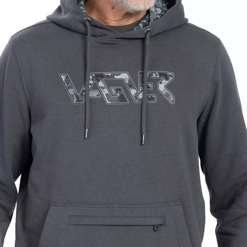 Disponuje také podšívkovanou kapucí, která je navíc z látky potištěné motivem sumčí kůže. Logo VAGNER najdeš vytištěné také na hrudi.