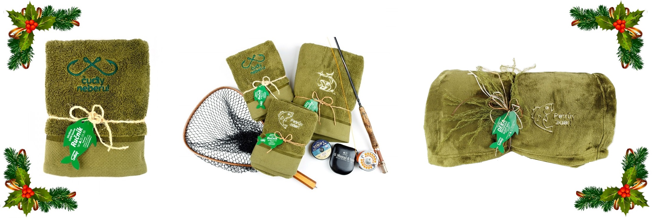 - Například rybářské dárkové sady, deky a ručníky s vyšívanými motivy