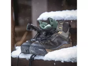 Brodící boty u kterých jsou na zakázku vyrobené gumové podrážky Michelin pro maximální přilnavost a odolnost.