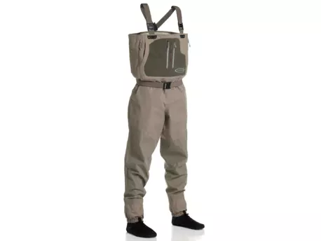 Brodící kalhoty mají spoustu kapes a pečlivě promyšlené funkce pro různé doplňky. Vícevrstvá roztažitelná náprsní kapsa má pohodlný tunel pro zahřátí ruk. Navíc mají velkou hlavní komoru, která je rozdělena na dvě části, obě zajištěné svislým zipem. Mezi zipy najdete užitečný popruh s poutkem, kde můžete připevnit různé pomůcky. Na horní části hrudníku je menší kapsa s klopou na příslušenství. Uvnitř kalhot je tradiční flipová kapsa na suchý zip.