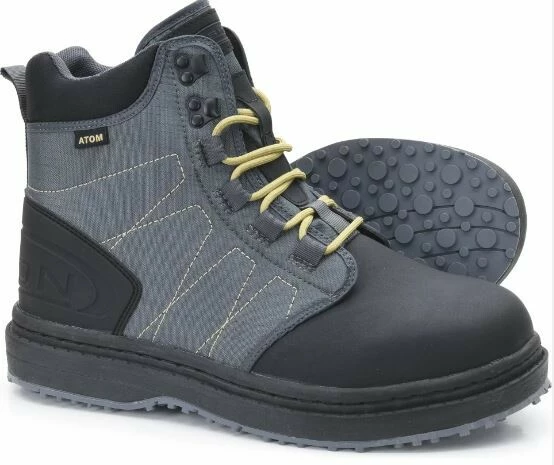 Brodící boty ATOM s gumovou podrážkou, jsou tradiční látkové boty, vhodné pro muškaře začátečníky. PVC materiál na přední části boty vydrží všechny nárazy a spolu se silnou a ochrannou mezipodešví EVA, činí tyto boty velmi odolné. Brodící boty nesmí být vystaveny přímému teplu (radiátory, kamna atd.) A nesmí být sušeny na prudkém slunci. V případě použití bot ve slané vodě je nutné boty nejprve omyt sladkou vodou a poté nechat usušit.