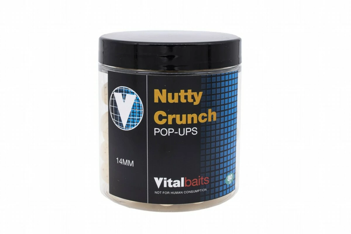 Pop-upy v neutrální béžové barvě doplňující řadu Nutty Crunch boilie. Stejně jako toto boilie i pop-upy získají po ponoření do vody nenápadný vybledlý vzhled. Směsi pro Pop-Up obsahují stejné atraktanty jako krmení stejné řady, ale v ještě větší míře. Vydrží plavat a uvolňovat neodolatelné aroma déle než 48 hodin.