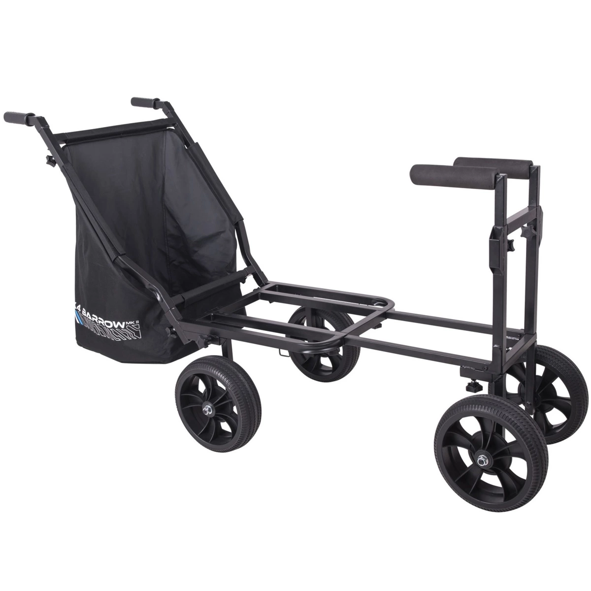Tento odolný čtyřkolový vozík s pevnou konstrukcí se vyznačuje svařovaným ocelovým rámem, dvojitou výztuhou se zadním úložným vakem, podpůrnými rameny ochranného boxu a prodlužovacími rukojeťmi. Specifikace: - pevná ocelová konstrukce - plně svařovaný - rozšíření hlavního rámu - prodlužovací plně nastavitelné rukojeti - včetně úložného vaku - čtyřkolové provedení - kompatibilní s většinou značek sedacích boxů - barva: černá