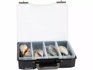 Box si můžete upravit podle své potřeby přeházením vyndavacích přihrádek. Pokud chcete v trezoru mít velké nástrahy až do 30 cm, stačí vyndat vnitřní přihrádky a využívat ho jako tzv. “Game” box. Díky křišťálově průhlednému víčku najdete své nástrahy velmi rychle. Navíc je vyroben z polykarbonátu odolného proti pádu. Vnitřní U-profily drží obsah přihrádek při přepravě bezpečně na svém místě. Základna boxu je vyrobena z polypropylenu nejvyšší kvalit a každý trezor má klouzavé zámky, přepravní rukojeť a vysoce trvanlivé panty z kvalitního plastu.