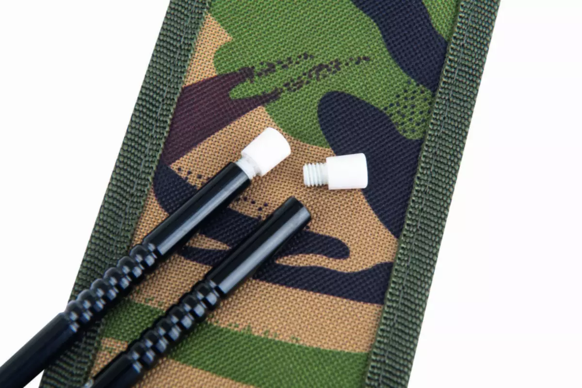 Obsahují drážky, které pomáhají zabránit sklouznutí a zamotání vlasce při obmotání. Díky vyjmutí přiložených T-Bar tyči, které jsou vloženy přímo do distančních tyči, je zaražení tyčí velmi snadné. Šroubovým pohybem lze takto snadněji tyči zavrtat do i těch nejtěžších terénů. Tyto T-Bar tyče mohou být ale i odloženy a místo nich upevněny izotopy. Součástí je také měřící vysoce viditelný Hi-Viz provázek, který díky tomu je snadno vidět i při nočním měření odrazem světla z vaši svítilny. Podél měřícího provázku jsou čtyři posuvné barevně kódované bodové značky, díky nimž lze nastavit a zajistit tu polohu, kdy je potřeba přesného omotání. Distanční tyče jsou dodávány v našem odolném taktickém maskovacím pouzdře, které obsahuje jednotlivé kapsy na uskladnění konkrétního vybavení tohoto produktu. Specifikace: - použitým materiálem je hliník s vysokou pevností v tahu - 2x distanční tyč s parametry 60 (d) x 1,3 (š) cm - silné, robustní a lehké tělo - drážky zabraňující skluzu vlasce - 2x integrální T-tyč a šnekový hrot - jasně bílé hlavy z PTFE s možností vložení izotopových indikátorů (nejsou součástí dodávky) - reflexní měřící provázek Hi-Viz - barevně kódované bodové značky - přepravní pouzdro v Tactical Camo barvě - barva: černá