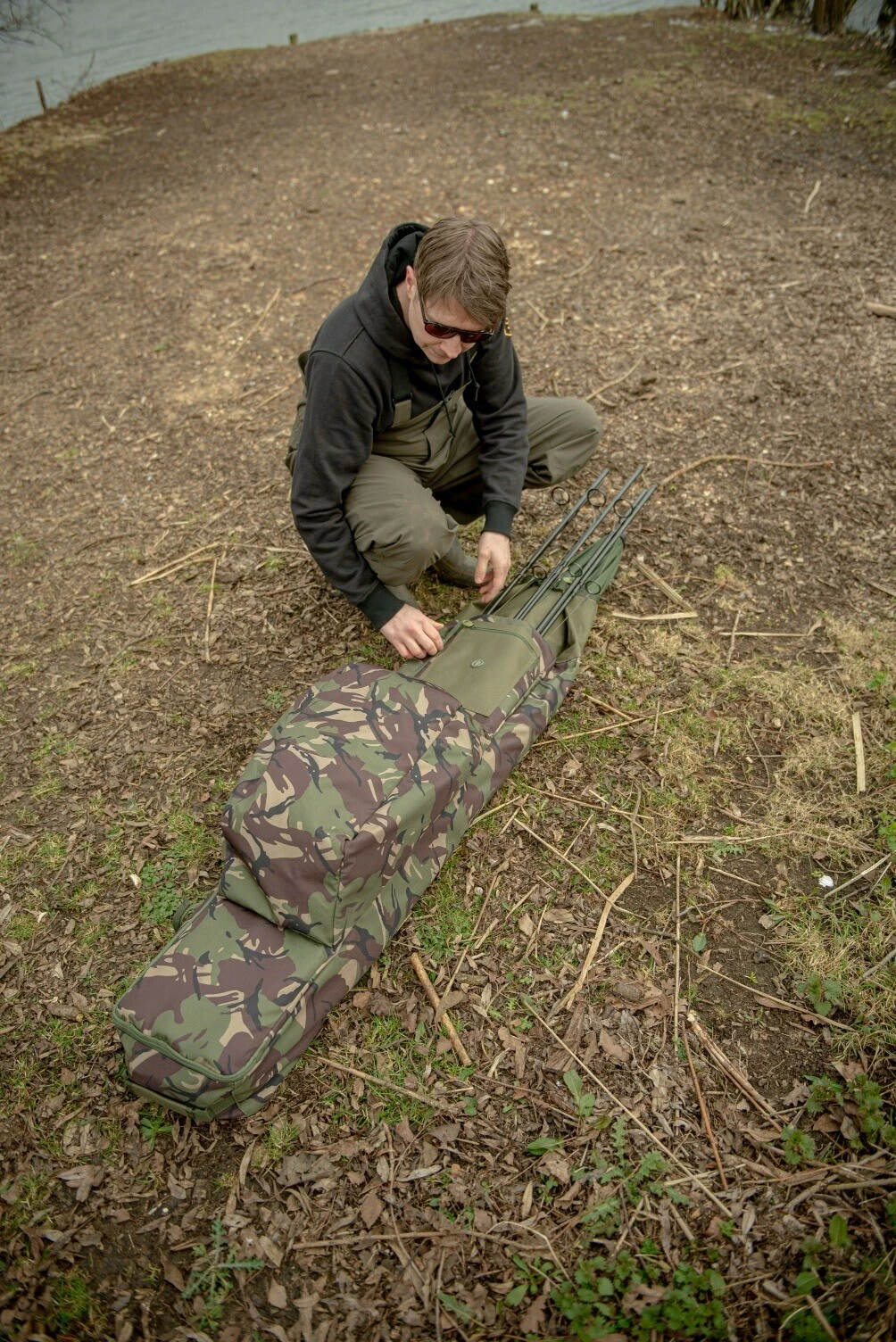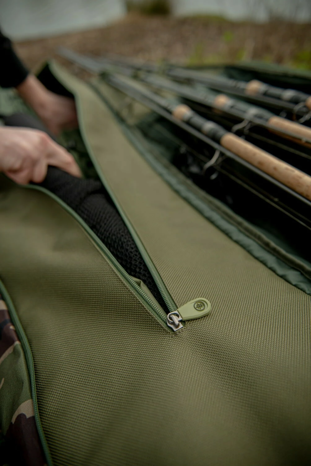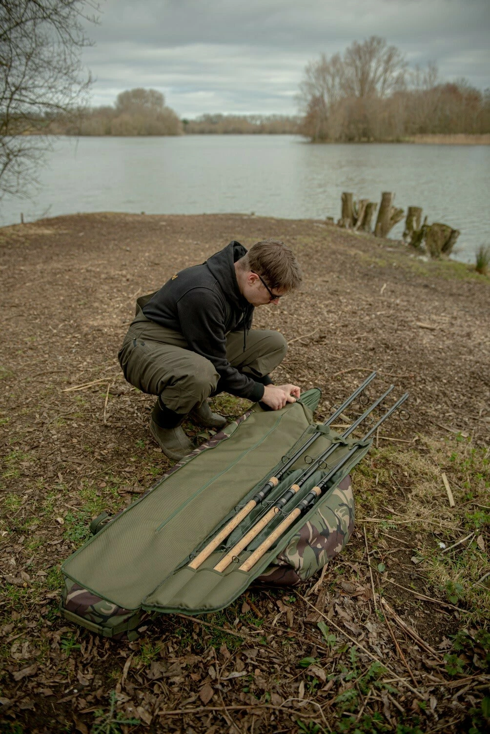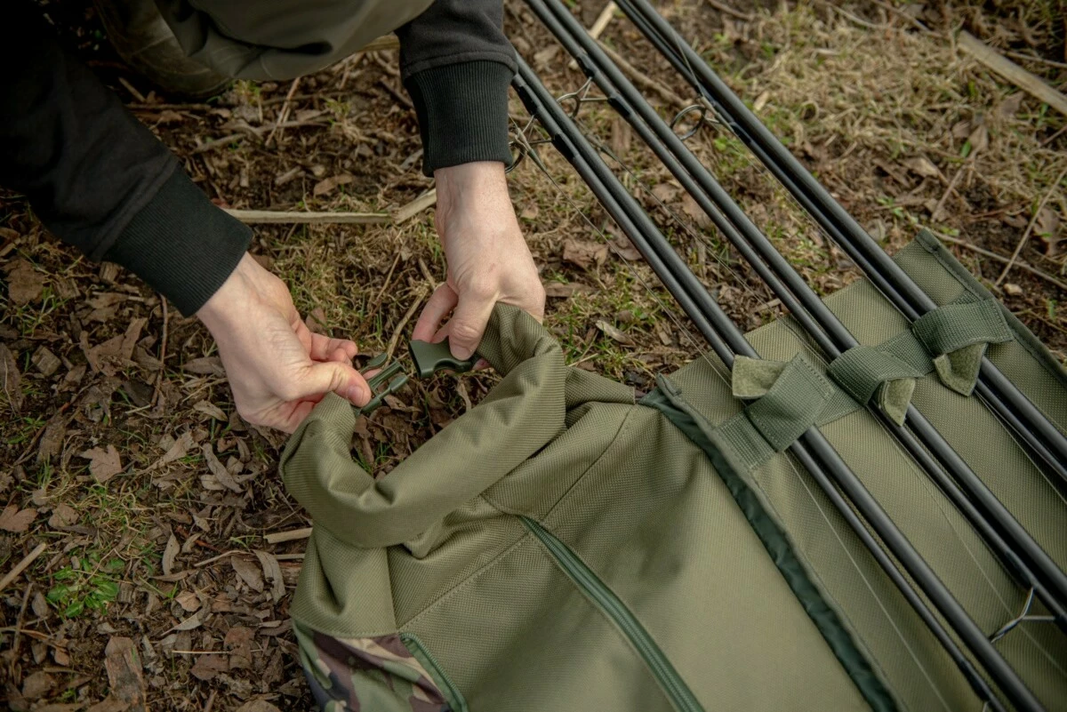 Pouzdro na pruty Tactical HD Quiver Foldall bylo navrženo především pro uskladnění až tři plně osazených prutů. Díky designu Quiver je možné do něj napasovat pruty různých délek. Obsahuje také velkou kapsu pro vážící saky, popřípadě podběráky nebo deštník. Velmi pevný materiál Nylon 1200D zaručuje odolnost, design a dlouhou životnost. Lze ho také lehce očistit vlhkým hadříkem nebo ručníkem. Má komfortní popruh přes rameno, odolné zipy Bespoke a vrchní část pouzdra obsahuje Roll Top design, tedy přebytečnou vrchní část lze lehce srolovat a dopnout plastovými klipsnami pro maximální bezpečnost uzavření. Pouzdro má také vnější kapsu se zipem na olova, zátěže apod. Specifikace: - použitý materiál Nylon 1200D - komfortní popruh pře rameno - polstrované kapsy na navijáky - vnitřní kapsa ze síťoviny - Roll Top design pro konkrétní nastavení požadované délky - velká komora na zipy - externí kapsa se zipem na olova a zátěže - barva: kombinace zelené a camo - rozměry: 1450 mm (délka) x 260 mm (šířka) x 300 mm (hloubka)