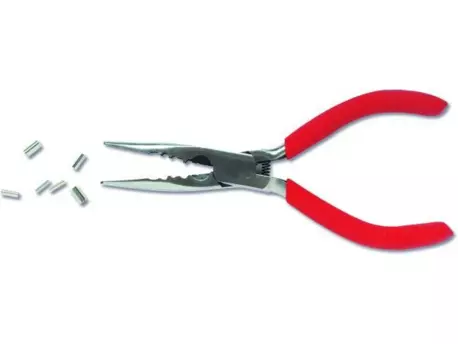 Praktická pomůcka k vlastní výrobě ocelových návazců. Dodává se s extra výbavou v podobě zamačkávacích trubiček v 5 průměrech a počtu 100 kusů. Baleno v plastové krabičce.
