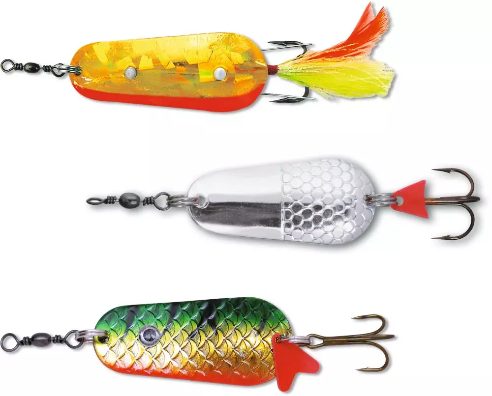 3 úspěšné barvy kombinované v jedné sadě plandavek. Ideální sada pro rybáře, kteří nechtějí řešit žádné kompromisy, ale mít na montáži vždy tu správnou účinnou nástrahu. Plandavky jsou opatřeny ostrými trojháčky a červeným zvýrazněním vzadu na třpytce, které se stará o dodatečný dráždicí impuls. Pro stahování bez motání jsou všechny plandavky opatřeny vpředu na těle funkčním obratlíkem, proto jejich úspěchu na rybách nestojí vůbec nic v cestě.