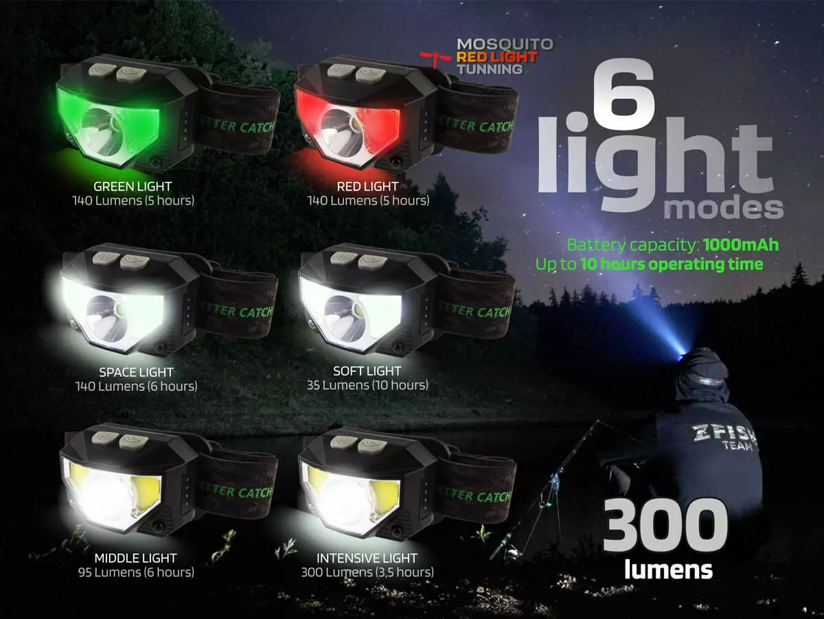 Při vývoji našich čelovek jsme se zaměřili na pět klíčových vlastností, které považujeme za zásadní pro noční rybolov. Lehká váha čelovek je důležitá pro komfort. Díky praktickým a hlavně pro rybáře velmi potřebným funkcím nabízejí širokou škálu světelných režimů pro různé situace u vody – od ostřejšího kužele přes rozptýlené světlo až po ambientní režim, tak aby splňovali požadavky i pro extrémní rybaření. Všechny modely jsou samozřejmě vybaveny zeleným a zejména červeným světlem Mosquito Red Light Tuning, které jsme optimalizovali na vyváženou vlnovou délku. Mosquito Red Light Tuning zajišťuje na jednu stranu velmi dobrou noční viditelnost, na druhou stranu, oproti jiným čelovkám tohoto typu, je upravená světelná frekvence tak, aby maximálně eliminovala přitahování obtížného hmyzu, komárů apod. Nechybí ani další praktické funkce, jako je paměťový režim pro automatické zapnutí posledního nastavení světelného módu, indikátor stavu baterie nebo pohybový senzor pro bezdotykové ovládání. Díky své minimální hmotnosti a nastavitelnému elastickému popruhu se čelovka velmi pohodlně nosí – téměř zapomenete, že ji máte na hlavě.