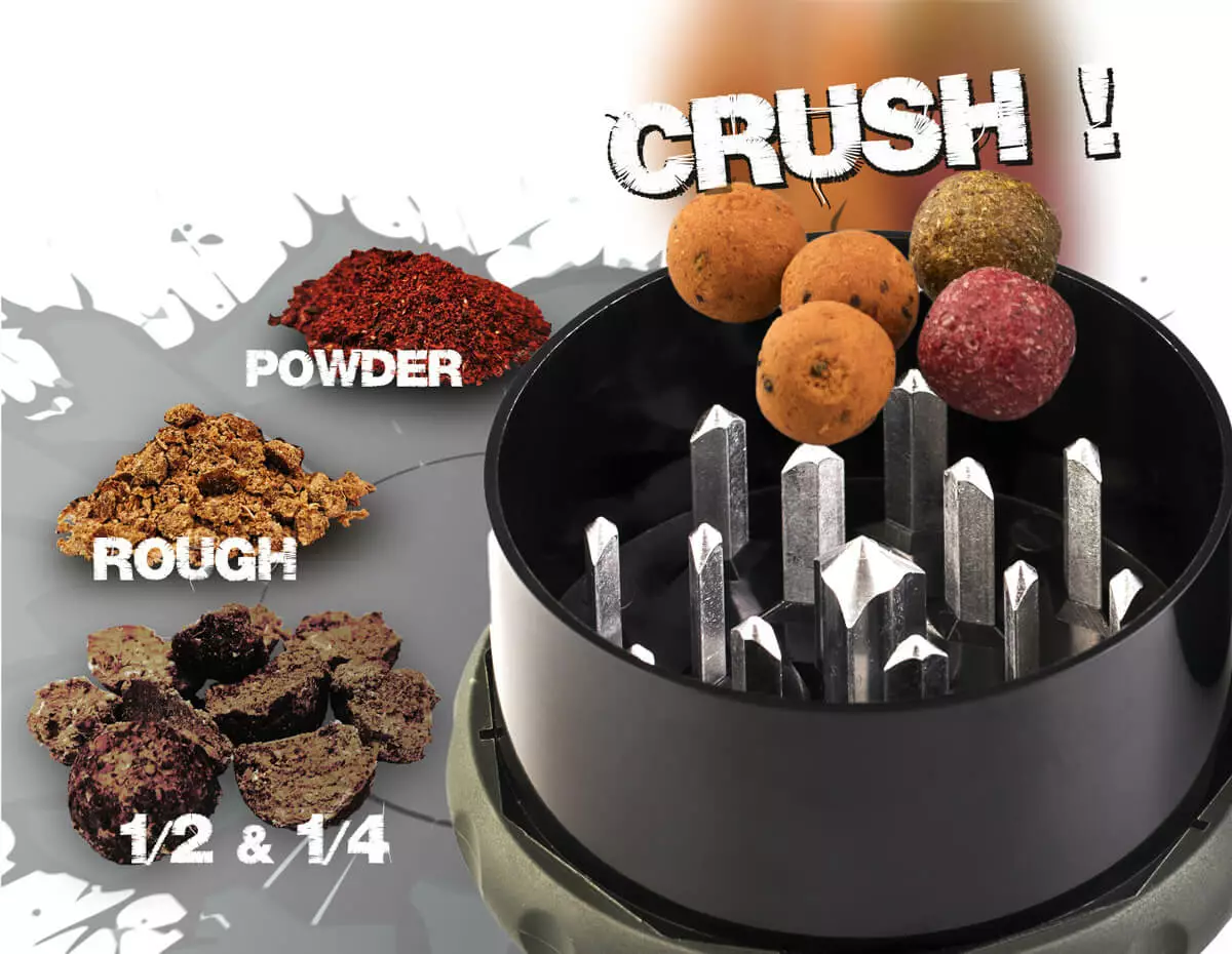 Drtička ZFISH Heavy Duty Bait Crusher je navržena pro snadné a rychlé rozmělnění i těch nejtvrdších návnad, jako jsou tygří ořechy nebo extrémně tvrdé boilies, na lákavou drobenku. Tento praktický nástroj je ideální pro přípravu směsí do PVA sáčků, punčoch a mixů pro vnadění raketou. S touto drtičkou odvedete práci rychle a efektivně. Unikátní konfigurace silných, kovových drtících zubů je navržena pro rozmělnění širokého spektra návnad – od tygřích ořechů, pelet až po tvrdé, řádně vysušené boilies. Stačí spojit obě poloviny drtičky, otáčet je a snadno rozdrtíte návnadu. Pro optimální výsledky doporučujeme nepřeplňovat drtičku přílišným množstvím návnady. S menším množstvím návnady bude drcení jednodušší a efektivnější, a zároveň snížíte riziko ucpání drtičky.