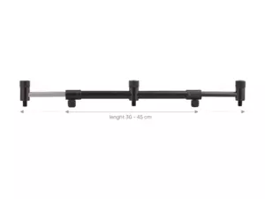 ZFISH Buzzer Bar ZFX 3 Rods je velice precizně zpracovaná, kvalitní a pevná hliníková hrazda v černém matném provedení. Velkou výhodou této hrazdy jsou tzv. integrované závity, které Vám umožní jednoduše a hlavně přesně srovnat úhel hlásičů vůči hrazdě a stojanu. Další výhodou je teleskopicky nastavitelná šíře 31-45 cm a navíc hrazdu lze ukotvit k zemi pomocí jedné, dvou nebo tří závitových vidliček. Díky tomu již nepotřebujete žádný kotvící kříž a nemusíte mít obavy, že se vám hrazda bude protáčet při prudkém záběru.