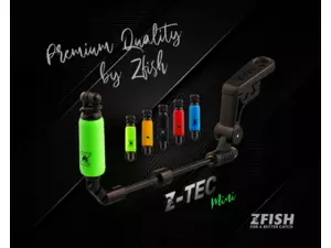 Z-Tech Mini představuje unikátní, prvotřídně zpracovaný swinger z dílny ZFISH v minimalistickém provedení. Při jeho vývoji jsme kladli důraz na funkčnost a perfektní zpracování všech komponentů. Dva dokonalé sladěné kloubní mechanismy skvěle zachycují jakýkoli, byť sebemenší pohyb při záběru. Propracovaný klip na vlasec je vhodný pro různé průměry monofilů a zároveň je šetrný k samotnému vlasci. Samozřejmostí je nastavení vypnutí díky integrovanému posuvnému závaží a také odnímatelný rychloklip pro rychlé odepnutí swingeru ze stojanu nebo vidličky