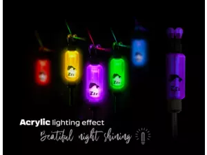 Jedná se o unikátní a zároveň inovativní produkt z dílny ZFISH s evropským chráněným designem. Elegantní tělo bobbinu je vyrobeno z vysoce kvalitního akrylového materiálu, který zajišťuje rovnoměrný rozptyl světla a zářivé barvy. Klip na vlasec je navržen tak, aby byl maximálně šetrný jak k vlasci tak šňůře a zároveň zamezuje jeho poškození, i při častém používání. Díky svítící led diodě vám pomůže rychle reagovat na každý záběr za šera i v noci. Kabel je skrytý ve speciálním pružinovém drátu, který zabraňuje jeho poškození. Bobbin je vybaven integrovaným závažím, které lze snadno zafixovat ve všech pozicích. Tento inovativní prvek umožňuje rybáři přizpůsobit bobbin jakékoli situaci, což zajišťuje maximální stabilitu a flexibilitu při rybolovu.