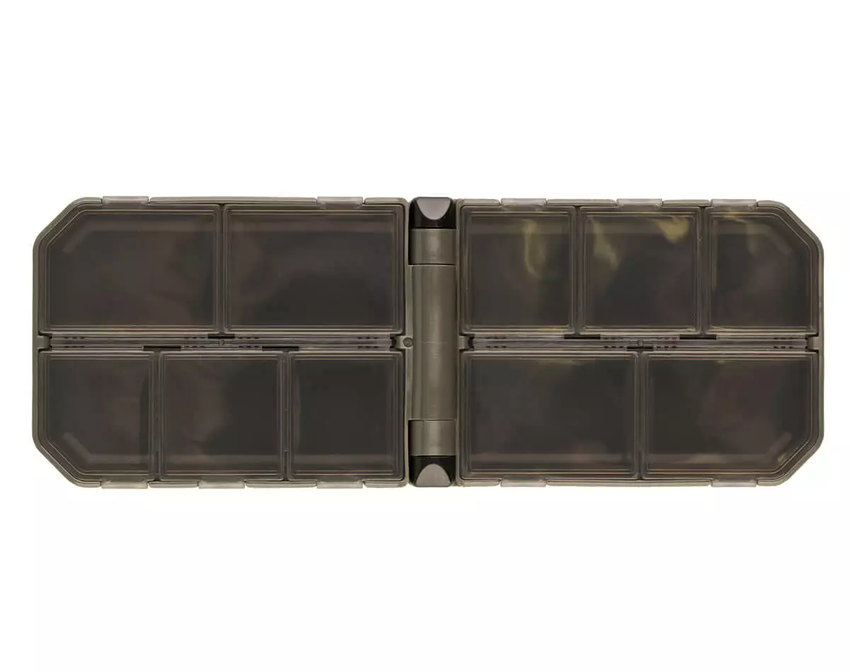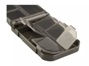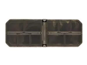 ZFISH Mini Double Box M je praktická oboustranná krabička/organizér od české značky ZFISH. Tento kompaktní tackle box disponuje 10-ti samostatně uzavíratelnými přihrádkami s čirými krytem, takže snadno a ihned vidíte kam a pro co sáhnout. Bezpečné uzavírání, nebo nechtěné otevření zajišťují magnety a velice pevné panty. Jednoduchý a čistý design se zkosenými a oblými hranami nejen skvěle vypadá, ale díky oblým tvarům je i samotná manipulace mnohem příjemnější. Výborný dojem už jen podtrhují odolné materiály a komponenty ve velmi elegantním, temně olivově zeleném provedení. Tento kompaktní box je například vhodný na nejdrobnější bižuterii a příslušenství, které potřebujete mít vždy po ruce, ideálně někde v kapse.