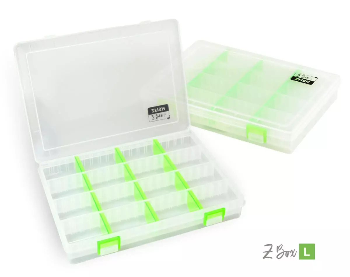ZFISH Krabička Z-Box L je klasická, univerzální, průhledná krabička/tackle box od české značky ZFISH. Tento organizér disponuje dostatečným prostorem a přihrádky si přizpůsobíte dle potřeby pomocí vyjímatelných přepážek. Bezpečné uzavírání, nebo nechtěné otevření zajišťují dva zavírací klipy.