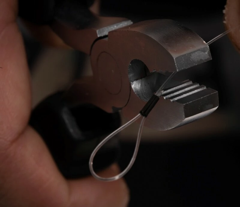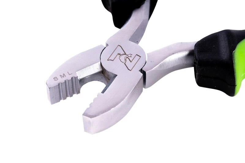 Krimpovací kleště ZFISH Crimping Pliers, jsou jako již sám název napovídá kleště na scvaknutí a přípravu pevných spojek při výrobě montáží. Tyto kleště mají na čelistech tři různě velké otvory ( 0,6, 0,7 a 0,8mm ) pro tlakově odstupňované zmáčknutí, což Vám umožní stlačení spojky přesně tak jak bude třeba vzhledem k síle a průměru spojovaných materiálů aniž by došlo k jejich poškození. Kleště jsou navíc opatřeny klasickými štípacími čelistmi, které si hravě poradí s vlasci, lanky ale i slabšími drátky.