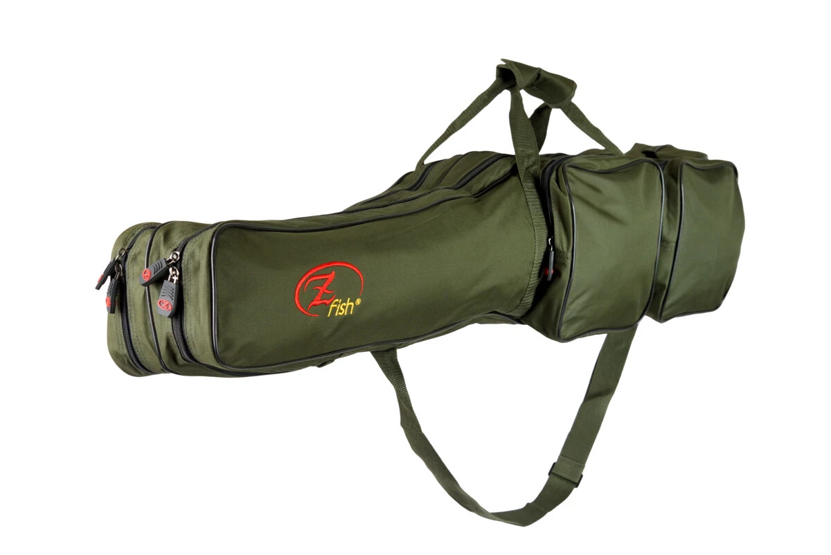 ZFISH Obal na Pruty Classic Rod Holdall 2 Rods. Kvalitní a pevné dvoukomorové pouzdro z nepromokavého a snadno omyvatelného materiálu pro bezpečnou přepravu teleskopických prutů s navijáky i ostatním příslušenstvím. Pouzdro je z jedné strany vybaveno dvěma kapsami na příslušenství a z druhé strany jednou dlouhou kapsou na podběrák a vidličky. Je možné ho přenášet jak v ruce tak na zádech. Ramenní popruh má nastavitelnou délku. Součástí všech zipů je velký jezdec se symbolem Z pro snadnejší otevírání a zavírání jednotlivých komor a kapes.
