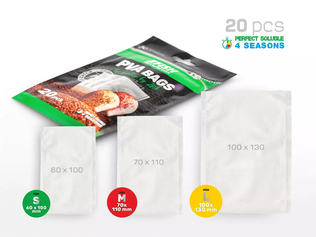 PVA sáčky, vyrobené z kvalitní japonské fólie, jsou ideální volbou k dokonalé prezentaci nástrahy i návnady na lovném místě. Lze je naplnit širokou škálou krmení od mikropeletek, boilies, method mixů, až po moderní tekuté posilovače, které PVA nerozpouštějí. Tyto sáčky mají velmi kvalitní podélné sváry, díky kterým je lze zcela naplnit bez obav z protržení i při těch nejprudších náhozech. V závislosti na teplotě a typu vody je doba rozpadu 25-50 vteřin. Náš tip: Při použití na řekách a v proudech doporučujeme před náhozem sáčky propíchnout, a naopak v případě lovu na bahnitém dně sáčky rozhodně nepropichovat !!! Pro dokonalé uzavření sáčků doporučujeme použít naše PVA nitě. Jsme si téměř jistí, že se naše PVA sáčky brzy stanou nepostradatelnou součástí Vaší krmné strategie.