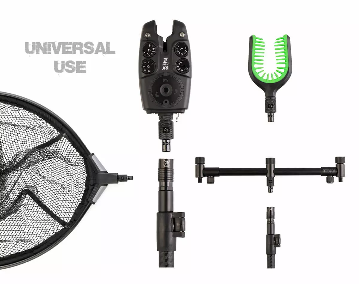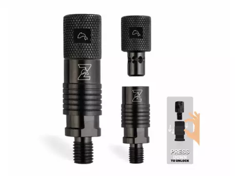 Jedinečná a vychytaná rychlospojka s univerzálním závitem, která funguje s pomocí zámku s kuličkovým ložiskem a speciálního tvaru spoje, který do sebe pasuje a zaručí, že se nerozpojí ani při prudkém záběru do strany. Do horní části spojky jednoduše našroubujte hlásič a spodní část klasicky namontujte na Váš stojan nebo vidličku. Po ukončení rybolovu jednoduše oddělíte a jednotlivé části ponecháte jak na hlásiči, tak na stojanu/vidličce. Při další výpravě stačí jen opět spojit a jste ušetřeni otravného a zdlouhavého šroubování. Spojka je celokovová, kvalitně zpracovaná s černou povrchovou úpravou. Standartní závity pasují na většinu běžných rybářských stojanů a vidliček.