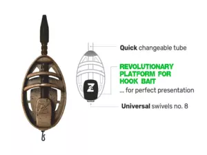 ZFISH Method Feeder ZFX jsou špičková a propracovaná method krmítka "NOVÉ GENERACE" z prémiové řady “3Fish”. Na vývoji těchto sofistikovaných krmítek se podílel team našich specialistů a jsou skutečně promyšlená do posledního detailu. Krmítka mají ideální velikost a jsou dokonale vyvážená, takže se s nimi dobře nahazuje a ke dnu dosednou vždy tou správnou stranou. Revoluční novinkou u těchto krmítek je speciální můstek/ploška k umístění nástrahy s háčkem, což zaručí, že Vaše nástraha bude vždy přesně tam, kde má být. Velkou výhodou krmítka je možnost snadné a rychlé výměny zátěže. Umožňuje to vyjímatelná trubička a průřez na zadní straně krmítka. Po vysunutí trubičky z těla krmítka stačí vyjmout vlasec a vyměnit zátěž za jinou. Taková variabilita vám poskytne možnost přizpůsobení se různým podmínkám během lovu, bez nutnosti zdlouhavého převazování koncové sestavy. Krmítka jsou zhotovena v matně hnědé barvě s černými tečkami, takže snadno splynou se dnem a ryby v okolí krmného místa nebudou tolik vyrušovat. Součástí je samozřejmě i univerzální QC obratlík vel. 8 pro snadnou výměnu koncového návazce.