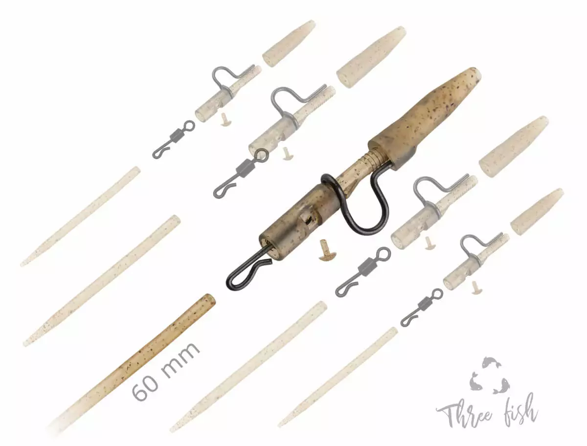 - Obsah balení: 5x převlek Tail Rubber, 5x závěska Heavy Duty Clip, 5x aretační kolík pro správné zafixování obratlíku, 5x Quick Change Swivel v prémiové kvalitě s antireflex (nelesknoucí) povrchovou úpravou, 5x 60mm Anti tangle proti zamotání návazce