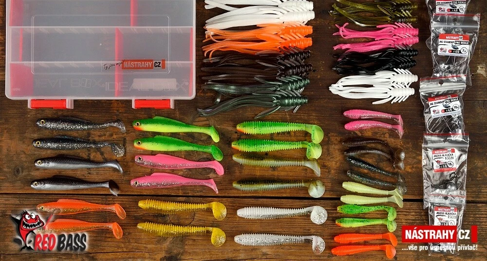 Pečlivě vybraná sada osvědčených nástrah pro lov candáta a k nim jigovky vč. krabičky..