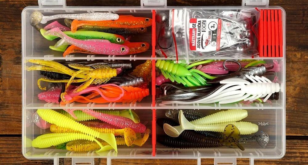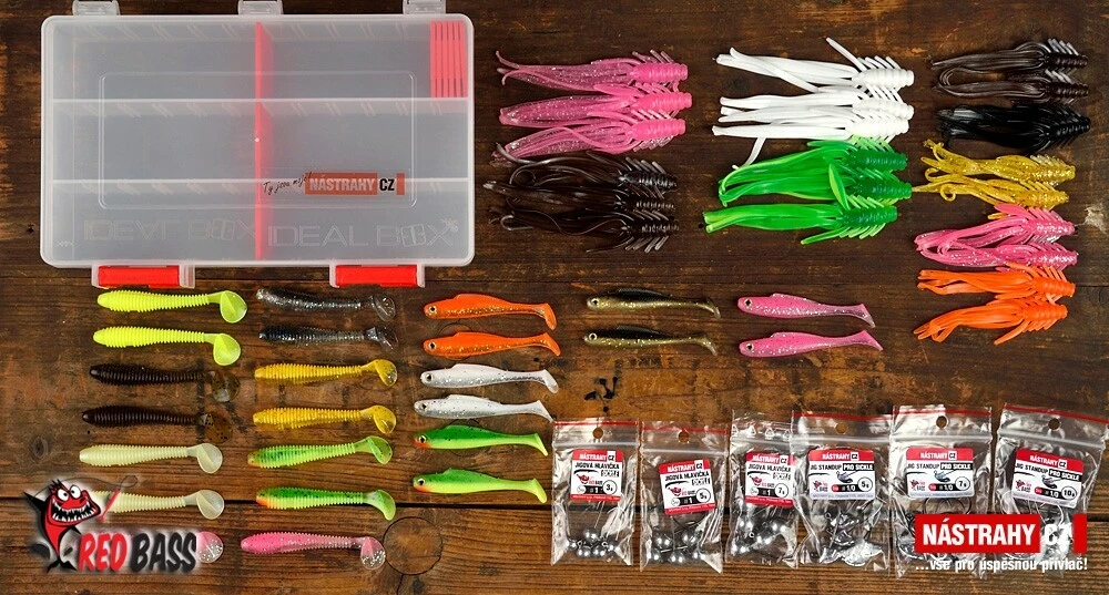 Pečlivě vybraná sada osvědčených nástrah pro lov candáta a k nim jigovky vč. krabičky..