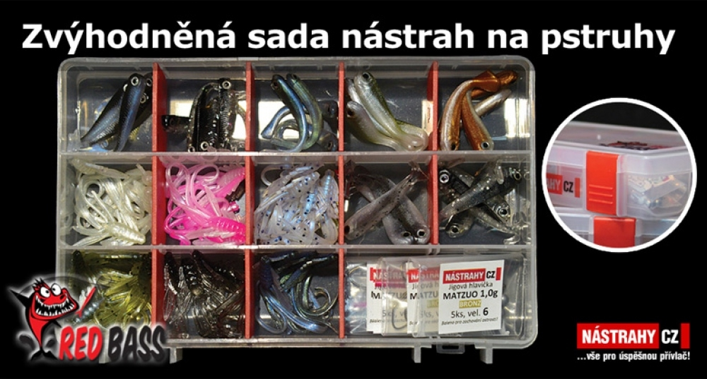 Pečlivě vybraná sada osvědčených nástrah pro lov pstruhů potočních, duhových a sivenů a k nim odpovídající jigové hlavičky vč. krabičky. Další info