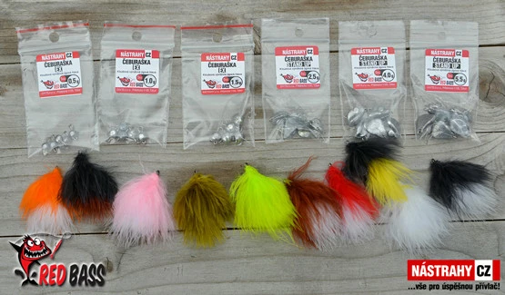 Sada účinných streamerů marabou "čeburaška" a vhodných čeburašek (vyměnitelná kloubová zátěž). Streamer marabou "čeburaška" je účinná netradiční nástraha z jemného peří speciálně vyrobená nejen pro kombinaci s čeburaškou (použit háček s velkým očkem).